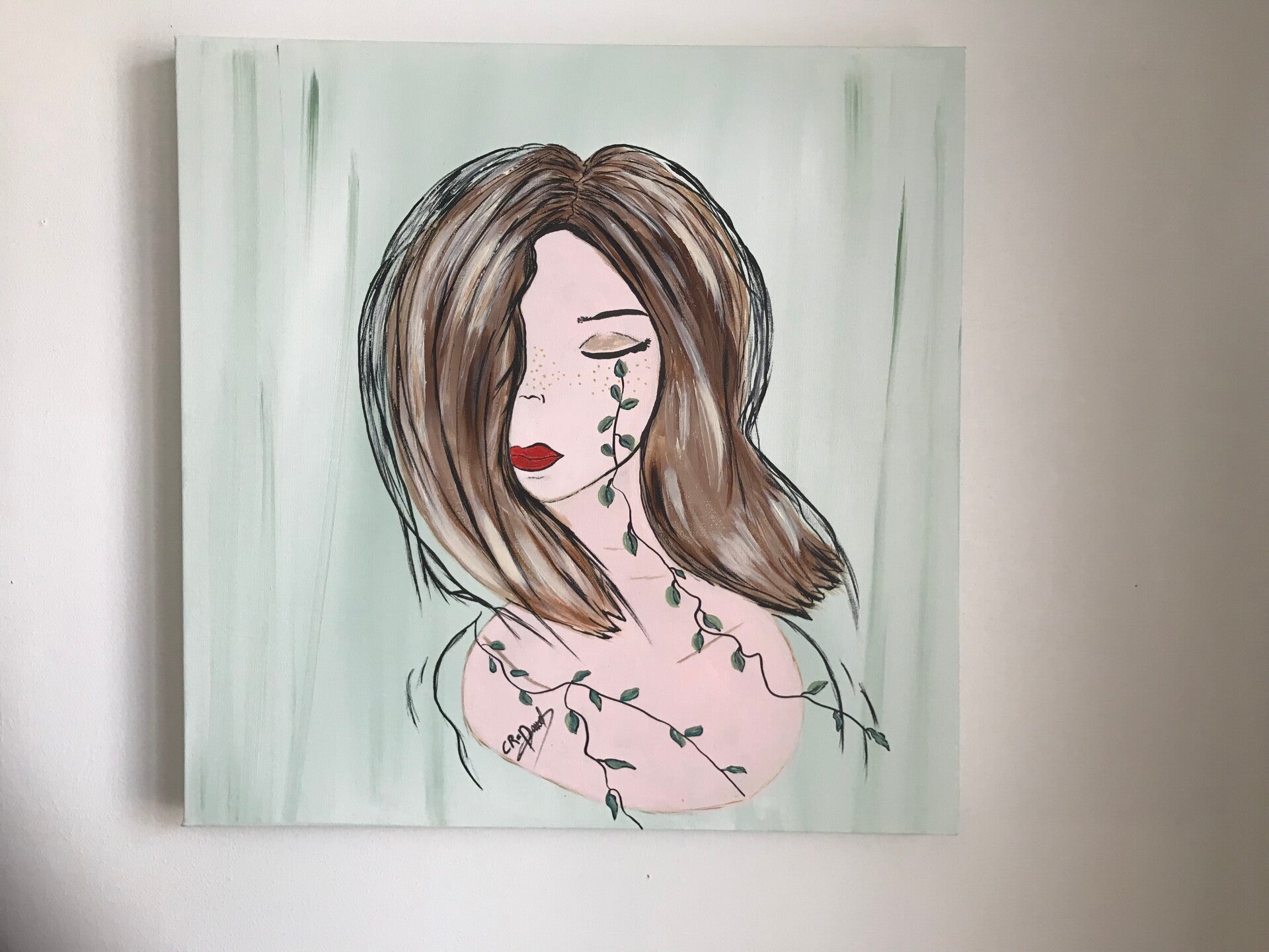 Œuvre d’art unique, acrylique sur toile, œuvre intitulée ( le murmure aux feuillages)