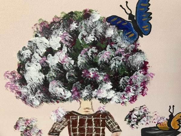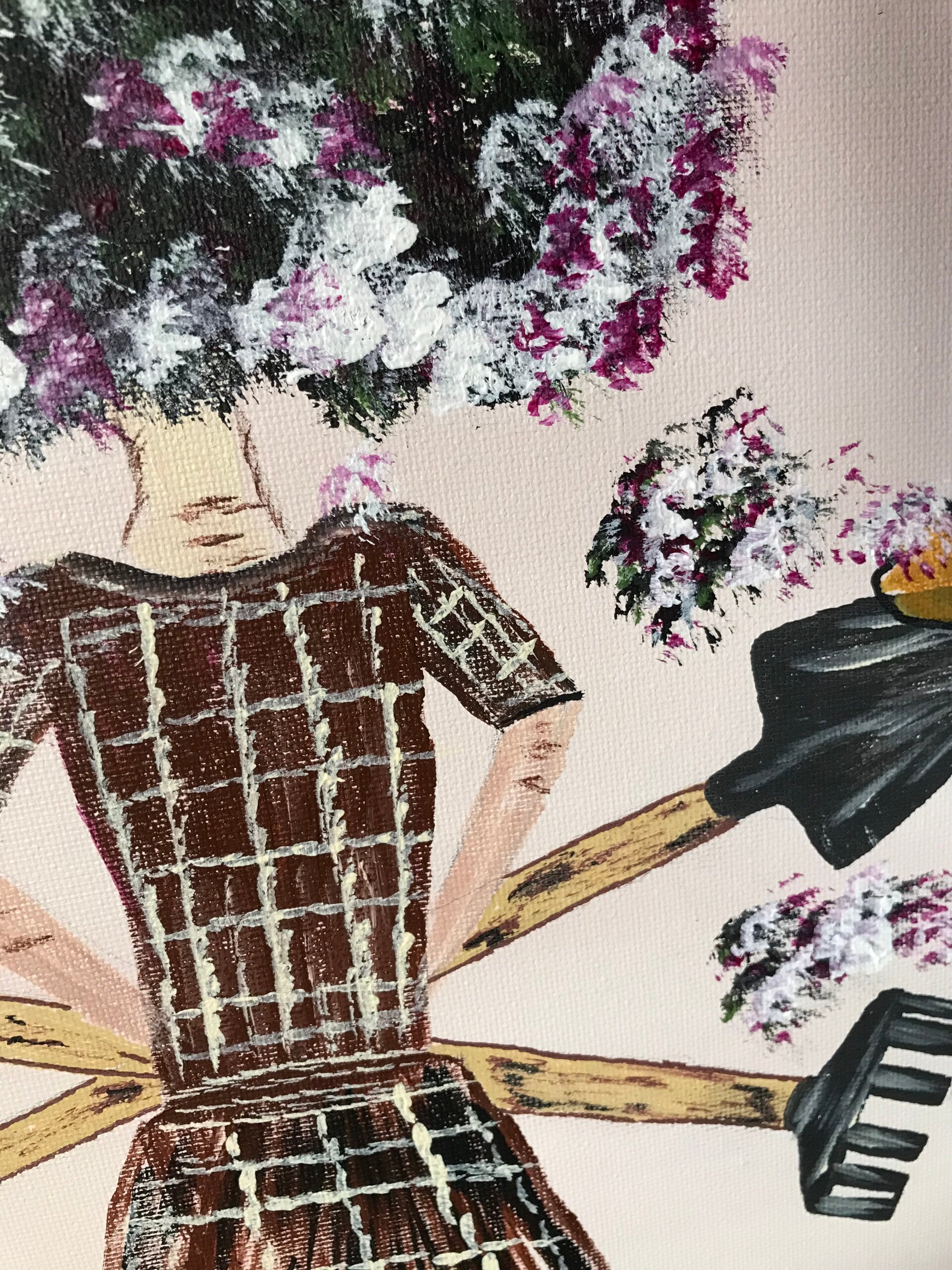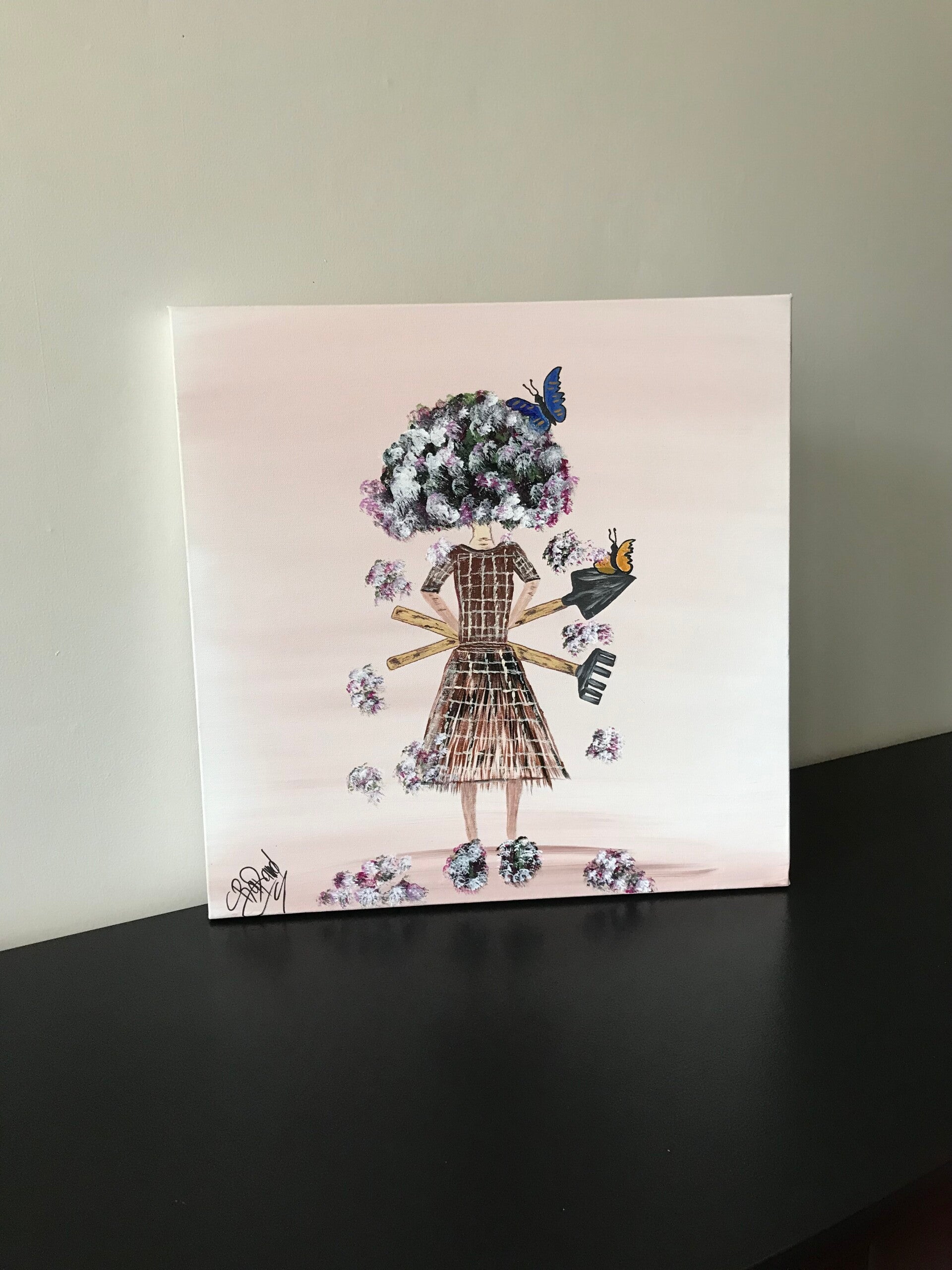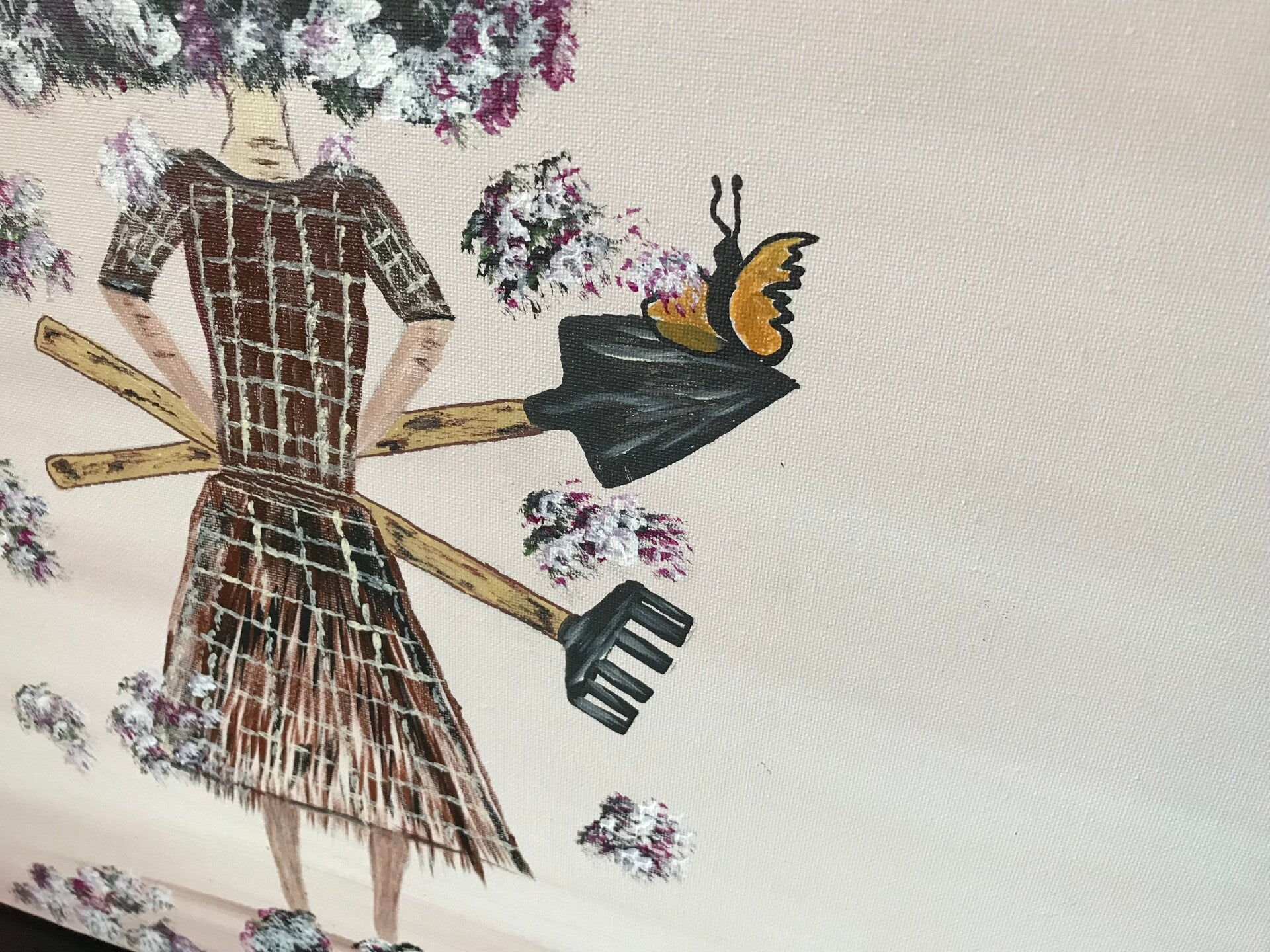 Art surréaliste, œuvre d’art unique, acrylique sur toile, oeuvre intitulée ( la jardinière)