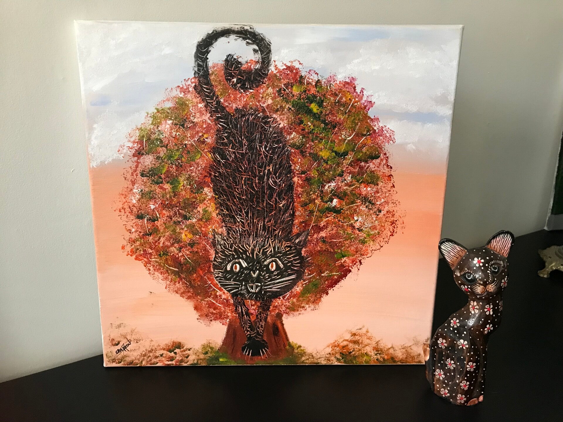 ACRYLIQUE SUR TOILE, SURRÉALISME, CHAT, OEUVRE UNIQUE, OEUVRE ORIGINALE, ART CONTEMPORAIN, IDÉE CADEAU POUR NOËL