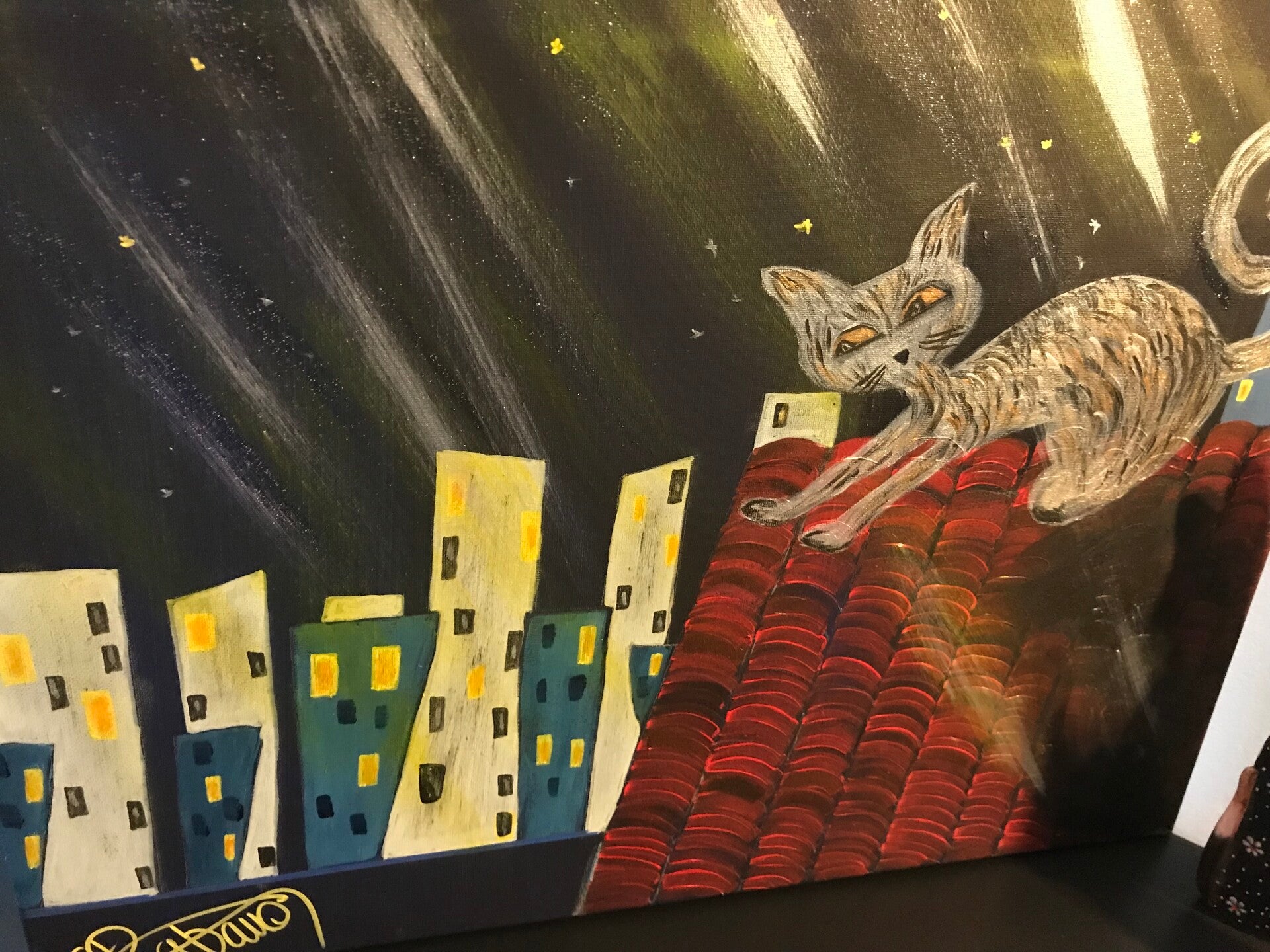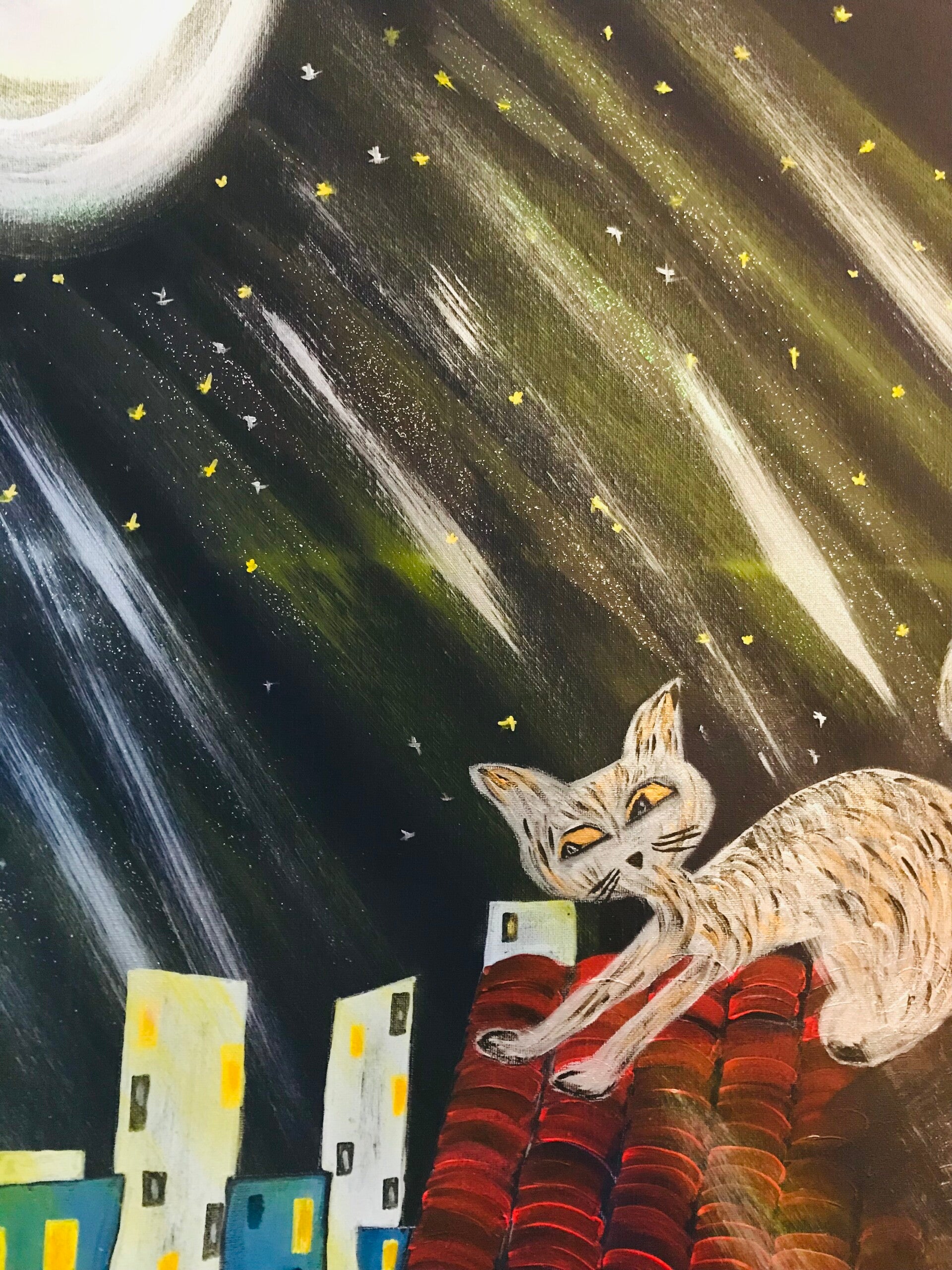 Fox-trot se balade la nuit au clair de lune 🌒 sur les toits de la ville 🌆 il attend patiemment son maître pianiste qui joue la nuit au pub du coin.