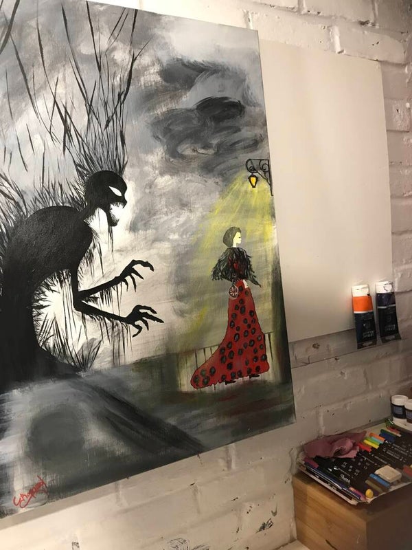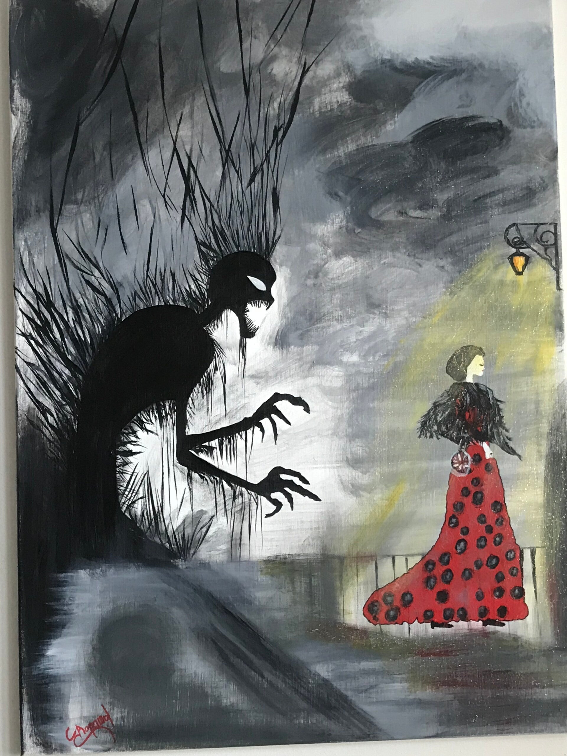 Cette œuvre puissante évoque les contes gothiques, l'expressionnisme allemand et l'univers de Tim Burton. Elle interroge nos peurs intérieures, nos démons personnels qui surgissent au crépuscule, quand la lumière faiblit.